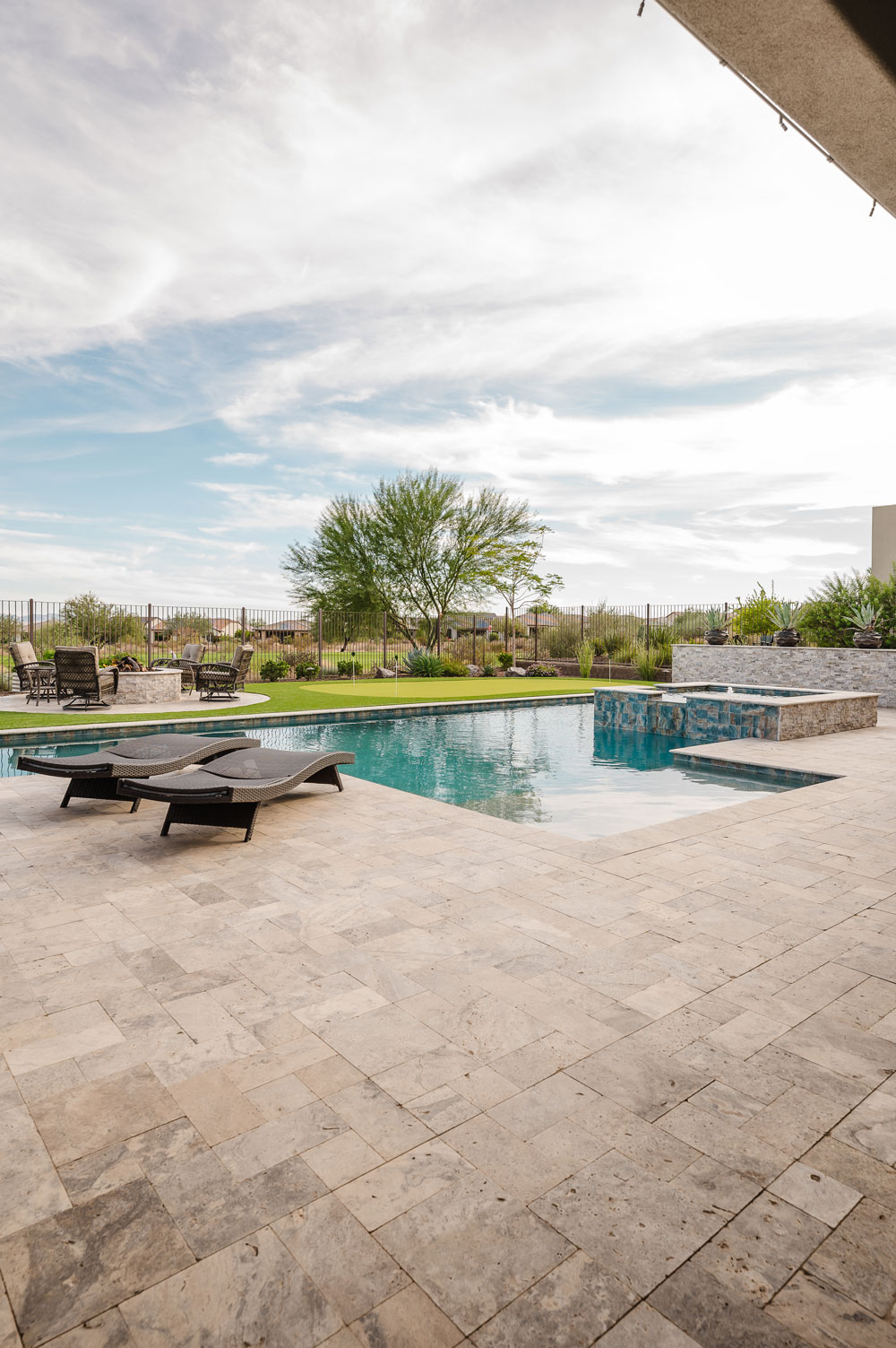The Carlson Residence brings together fun and functionality to create a true resort-style backyard. With extra-wide views of Four Peaks as the backdrop, the design features a custom putting green, a striking fire element, and a fully equipped outdoor kitchen.